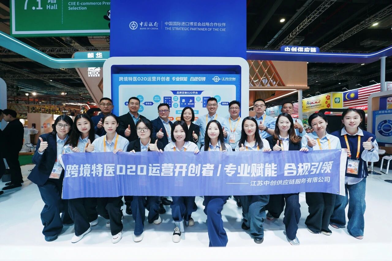 2025年11月6日,第八届中国国际进口博览会中国银行跨境电商专区正式启幕。江苏中创供应链服务有限公司作为特邀企业亮相专区,合伙人赵熹光女士代表公司出席启动仪式。本次进博会,江苏中创以三大核心亮点,系统展示了公司在特殊医学配方食品跨境领域的全链条服务能力与生态构建实力,成为展会中备受关注的“特医跨境标杆”。